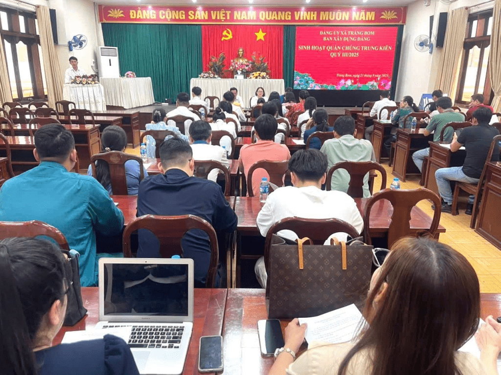 Sáng ngày 21 tháng 9 năm 2025, Ban xây dựng Đảng xã Trảng Bom, tổ chức sinh hoạt quần chúng trung kiên quý III/2025. Về tham dự buổi sinh hoạt có gần 80 quần chúng ưu tú là Học sinh, Sinh viên, Đoàn viên, Giáo viên, Công nhân, viên chức lao động...đang học tập, lao động, công tác trên địa bàn xã Trảng Bom, đến tham dự.