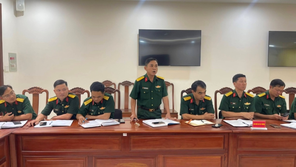 Đại tá Bùi Đăng Ninh, Tỉnh ủy viên, Phó Bí thư Thường trực Đảng ủy Quân sự tỉnh, Chính ủy Bộ CHQS tỉnh chủ trì buổi làm việc (ảnh CTV)
