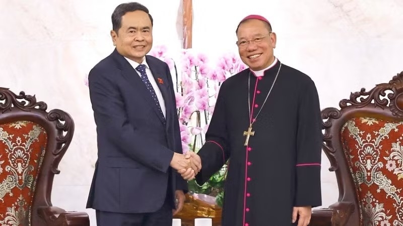 Tổng Giám mục Tổng Giáo phận Hà Nội Vũ Văn Thiên trân trọng cảm ơn Chủ tịch Quốc hội Trần Thanh Mẫn đã đến thăm, chúc mừng nhân dịp Lễ Phục sinh.