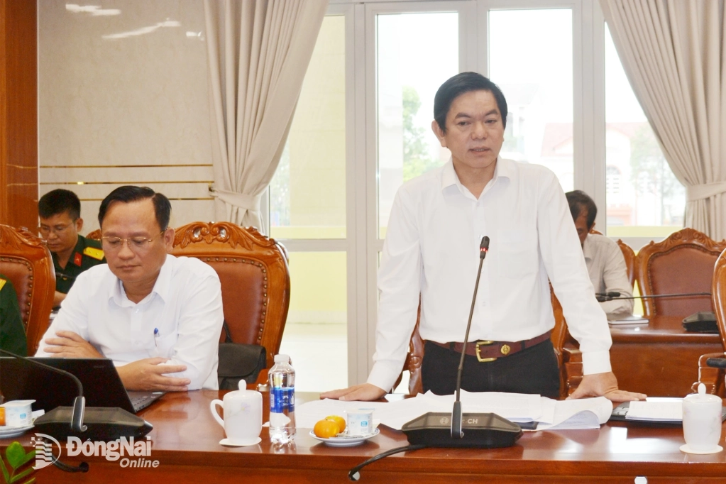 | Ủy viên Ban Thường vụ Tỉnh ủy, Phó Chủ tịch Thường trực UBND tỉnh, Phó Trưởng ban Chỉ đạo 07 Tỉnh ủy Đồng Nai Nguyễn Kim Long phát biểu tại hội nghị. Ảnh: Phương Hằng |