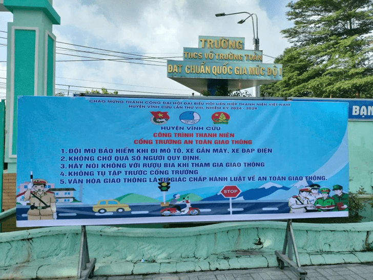 Trước đây, vào giờ phụ huynh đưa đón các em học sinh, nhất là thời gian tan học, cảnh ùn tắc giao thông cục bộ trên tuyến đường dẫn vào trường học ở nhiều nơi vẫn thường xuyên diễn ra. Nguyên nhân chủ yếu là do nhiều phụ huynh đậu xe sát cổng trường gây khó khăn cho học sinh khi ra về. Nhất là xe ô tô đậu đỗ không đúng nơi quy định, lấn chiếm vỉa hè… cá biệt, có phụ huynh còn chạy xe vào tận sân trường để đưa đón con em mình, gây bức xúc cho nhiều phụ huynh khác. Thực hiện sự chỉ đạo của Huyện đoàn - Hội đồng đội huyện Vĩnh Cửu, Liên đội trường THCS Võ Trường Toản (xã Tân Bình) đã ra mắt mô hình "Cổng trường ATGT", mô hình đã phân chia khu vực hướng dẫn nơi đỗ xe dành cho phụ huynh và làn đường dành cho học sinh đi bộ; tổ chức đội hình thanh niên tình nguyện và “Đội cờ đỏ” tại khu vực cổng trường trong các giờ cao điểm nhằm hướng dẫn giao thông, vị trí đỗ xe đúng nơi quy định tại cổng trường. Theo đó, mỗi thành viên trong tổ sẽ trở thành những tuyên truyền viên vận động học sinh, phụ huynh chấp hành tốt các quy định về đảm bảo trật tự ATGT, không chở quá số người quy định, đội mũ bảo hiểm khi tham gia giao thông, đã uống rượu bia thì không tham gia giao thông, nhắc nhở người dân buôn bán gần cổng trường không lấn chiếm vỉa hè, lòng đường làm nơi buôn bán gây mất trật tự công cộng góp phần xây dựng văn hóa giao thông an toàn và thân thiện.