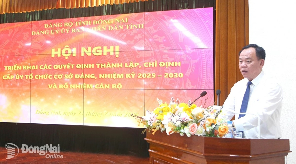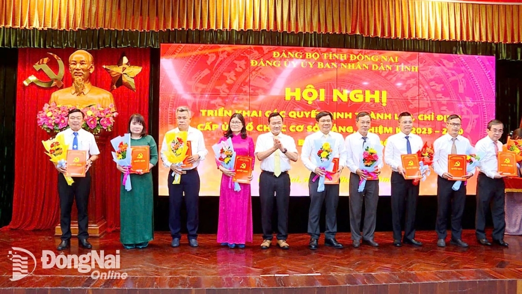 Tiếp đó, hội nghị công bố quyết định về việc chỉ định Ban Chấp hành, Ban Thường vụ, Bí thư, Phó bí thư của các cấp ủy trực thuộc Đảng ủy UBND tỉnh nhiệm kỳ 2025-2030 đối với 13 tổ chức cơ sở Đảng gồm: Chi bộ Cơ quan Đảng ủy UBND tỉnh, Đảng bộ Sở Nội vụ, Đảng bộ Kho bạc Nhà nước khu vực XVII, Đảng bộ Chi cục Hải quan khu vực XVIII, Đảng bộ Công ty Điện lực Đồng Nai, Đảng bộ Sở Văn hóa, thể thao và du lịch, Đảng bộ Thống kê tỉnh, Đảng bộ Bưu điện tỉnh, Đảng bộ Trung tâm Phát triển quỹ đất tỉnh, Đảng bộ Sở Y tế, Đảng bộ Công ty TNHH MTV Thủy lợi Đồng Nai, Đảng bộ Thi hành án dân sự tỉnh và Đảng bộ Bảo hiểm xã hội tỉnh.