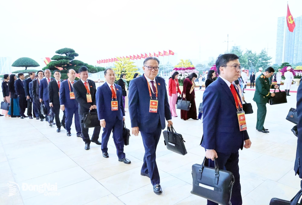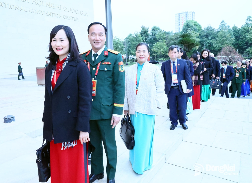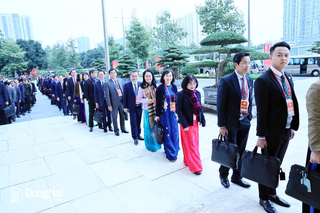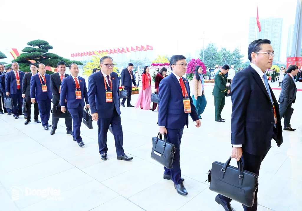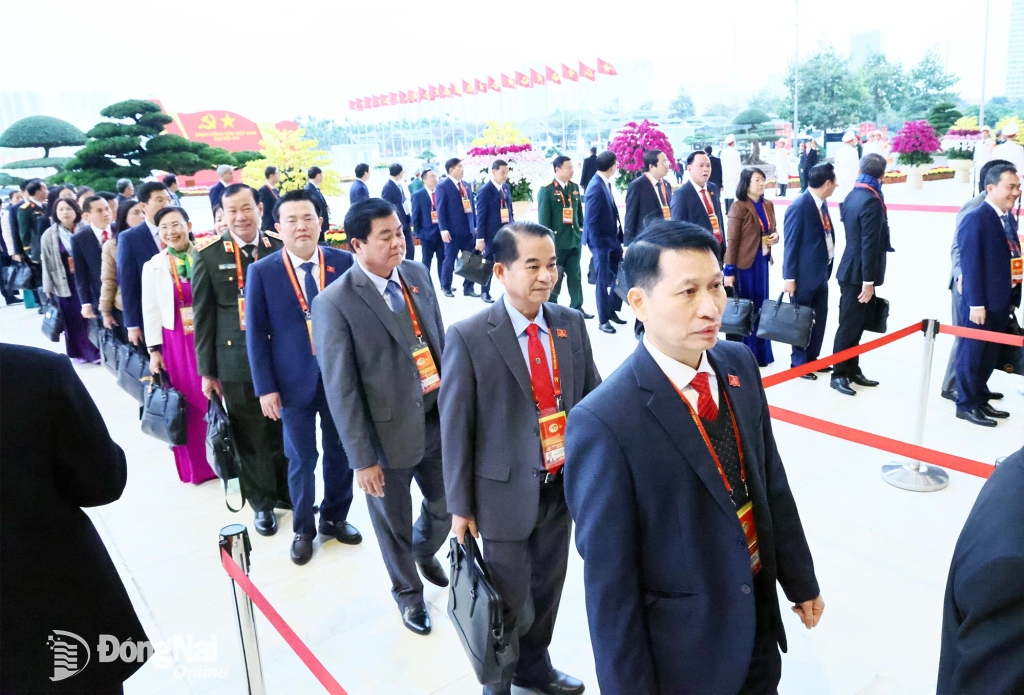 | Các đại biểu Đoàn Đảng bộ tỉnh Đồng Nai bước vào hội trường chuẩn bị cho ngày làm việc thứ 4 của Đại hội XIV. Ảnh: Công Nghĩa |