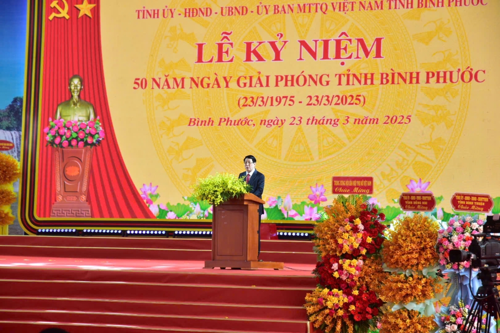 Kết thúc buổi lễ, đồng chí Vũ Hồng Văn, Bí thư Tỉnh ủy Đồng Nai đã gửi lời chúc mừng đến Đảng bộ, chính quyền và Nhân dân tỉnh Bình Phước nhân dịp kỷ niệm 50 năm giải phóng. Đồng thời, Đồng chí cũng bày tỏ mong muốn tiếp tục phát huy tinh thần đoàn kết, hợp tác giữa hai tỉnh, cùng nhau xây dựng quê hương ngày càng giàu đẹp, văn minh. Lễ kỷ niệm 50 năm giải phóng tỉnh Bình Phước không chỉ là dịp để ôn lại truyền thống hào hùng của dân tộc mà còn là động lực để các thế hệ hôm nay và mai sau tiếp tục phấn đấu, gìn giữ và phát huy những giá trị quý báu mà cha ông đã để lại.