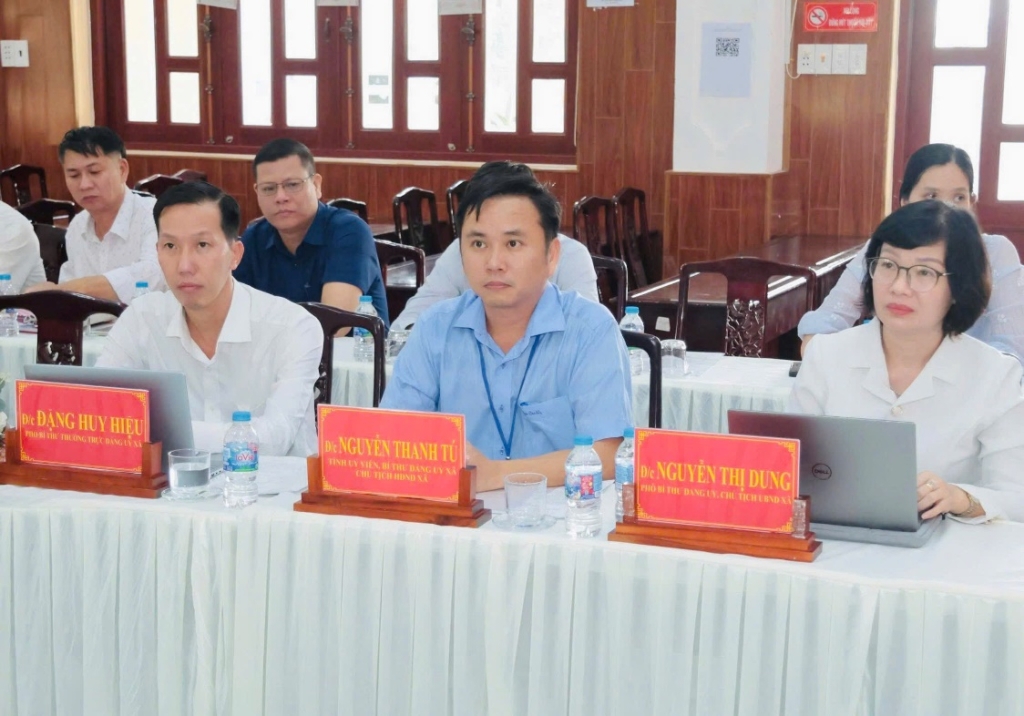 Đ/c Nguyễn Thanh Tú, TUV, Bí thư Đảng ủy, Chủ tịch HĐND, Chủ tịch Ủy ban bầu cử xã Trị An cùng các đồng chí trong Thường trực Đảng ủy tiếp và làm việc với Đoàn kiểm tra, giám sát của tỉnh (ảnh CTV)