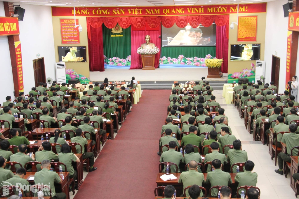 Tại điểm cầu Đồng Nai, đại diện các ban, ngành, lãnh đạo Công an tỉnh dự hội nghị.
