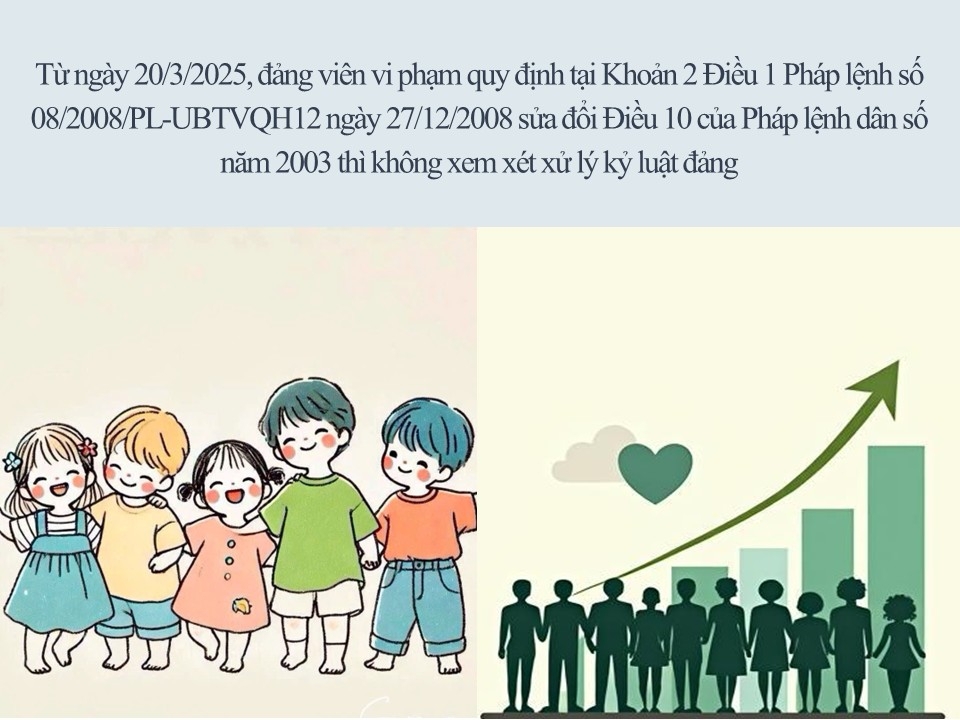 Như vậy, từ ngày 20/3/2025, đảng viên vi phạm quy định tại Khoản 2 Điều 1 Pháp lệnh số 08/2008/PL-UBTVQH12, ngày 27/12/2008 sửa đổi Điều 10 của Pháp lệnh Dân số năm 2003 thì không xem xét xử lý kỷ luật Đảng.