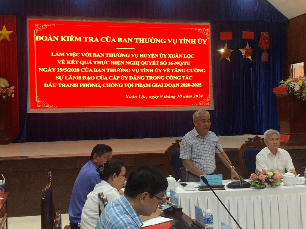 Kiểm tra thực hiện Nghị quyết số 16-NQ/TU, ngày 19/5/2020 của Ban Thường vụ Tỉnh ủy về công tác đấu tranh phòng, chống tội phạm tại Ban Thường vụ Huyện ủy Xuân Lộc