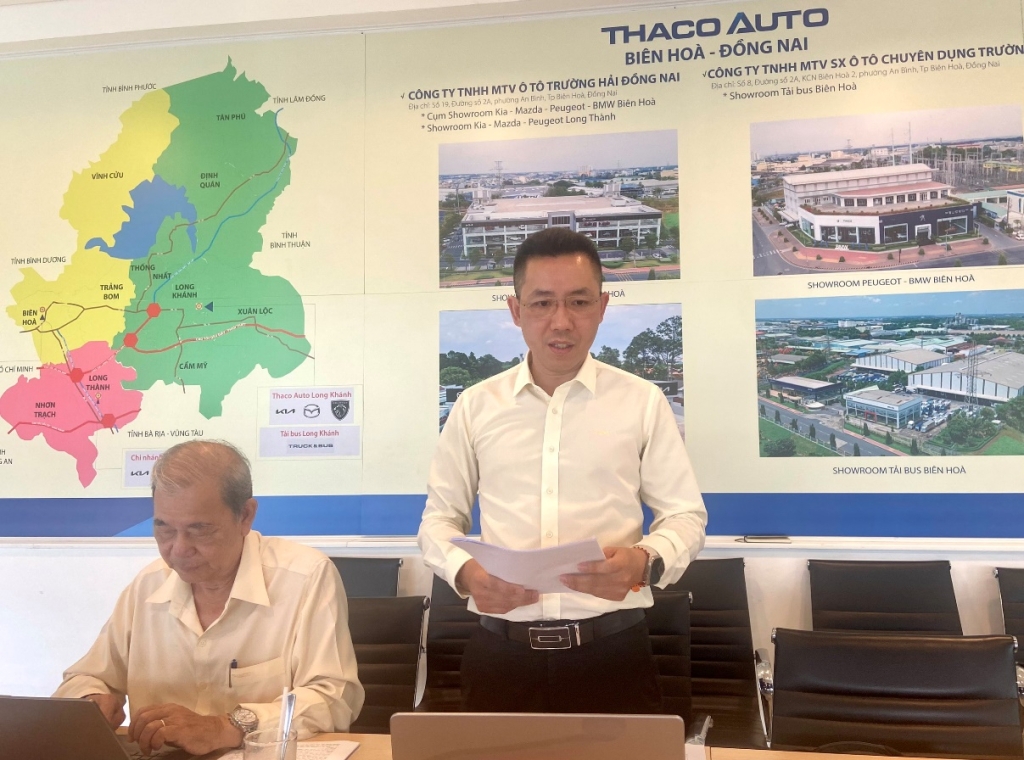 Đồng chí Nguyễn Văn Hiếu, Ủy viên BCH Đảng bộ Công ty CPTĐ Trường Hải báo cáo tại buổi làm việc