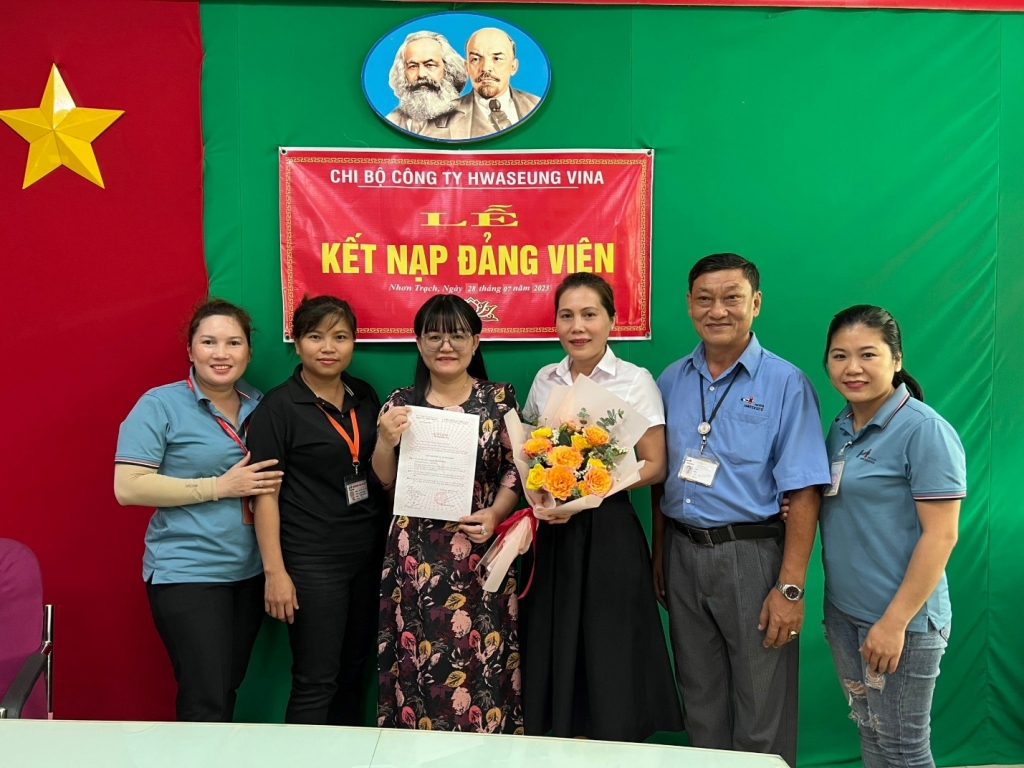 Lễ kết nạp đảng viên tại Chi bộ Công ty Hwaseung Vina, thuộc Đảng bộ huyện Nhơn Trạch