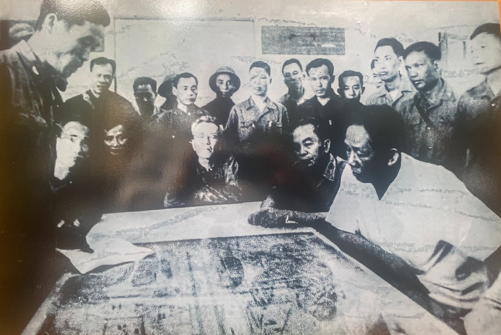Năm 1977, Tổng Bí thư Lê Duẩn làm việc với đồng chí Trần Văn Trà - UVTW Đảng, Tư lệnh Quân khu VII tại rừng Cát Tiên (Ảnh tư liệu chụp lại tại Bảo tàng tỉnh Đồng Nai)