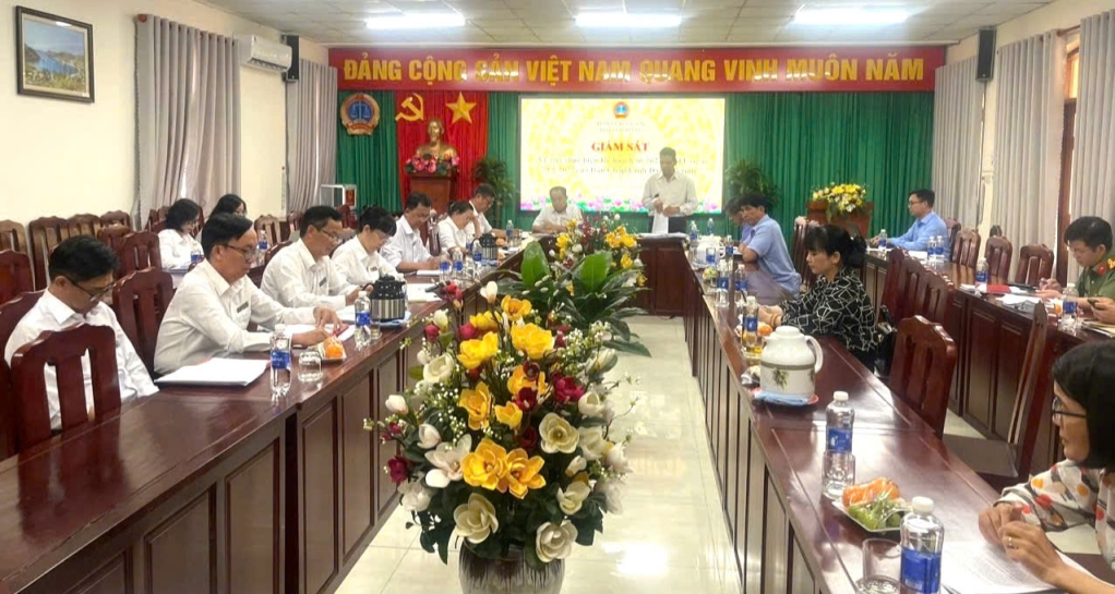 Ngày 05/6/2025, Đoàn Giám sát theo Quyết định số 2258-QĐ/TU ngày 23/5/2025 của Ban Thường vụ Tỉnh ủy về giám sát việc thực hiện Kế hoạch 262-KH/TU ngày 29/5/2023 của Ban Chấp hành Đảng bộ tỉnh về “thực hiện Nghị quyết số 27-NQ/TU ngày 09/11/2022 của Ban Chấp hành Trung ương Đảng khóa XII về tiếp tục xây dựng và hoàn thiện Nhà nước pháp quyền xã hội chủ nghĩa Việt Nam trong giai đoạn mới”, tiến hành triển khai quyết định, kế hoạch giám sát, thống nhất lịch làm việc với Đảng ủy TAND tỉnh. Cùng dự có các đồng chí thành viên Đoàn Giám sát; đồng chí Võ Văn Phước – Tỉnh ủy viên, Bí thư Đảng ủy, Chánh án Tòa án nhân dân tỉnh và tập thể Đảng ủy Tòa án nhân dân tỉnh.