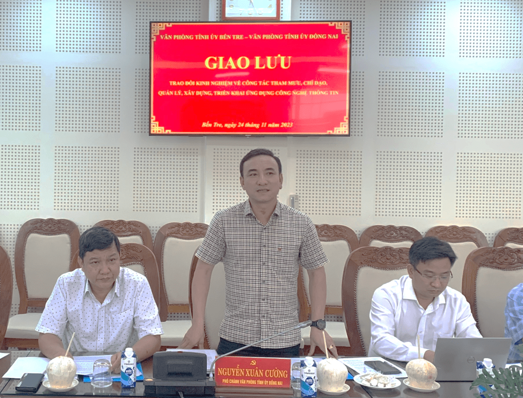 Đồng chí Nguyễn Xuân Cường cho biết mục đích của buổi giao lưu nhằm học tập kinh nghiệm của Văn phòng Tỉnh ủy tỉnh Bến Tre về công tác tham mưu và triển khai lĩnh vực công nghệ thông tin và cơ yếu; chọn lọc các nội dung, mô hình hay, cách làm tốt của địa phương để tham mưu triển khai thực hiện tại Văn phòng Tỉnh ủy Đồng Nai; đồng thời tạo điều kiện để cán bộ làm công tác công nghệ thông tin và cơ yếu của tỉnh Đồng Nai có thêm sự gắn kết, hiểu biết và mở rộng mối quan hệ với Văn phòng cấp ủy tỉnh Bến Tre.
