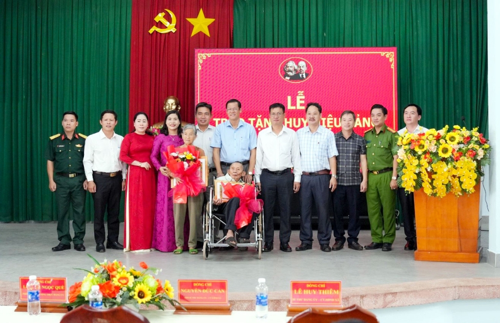 Lãnh đạo xã trao Quyết định và tặng hoa cho 2 Đảng viên nhận huy hiệu 60 năm tuổi Đảng